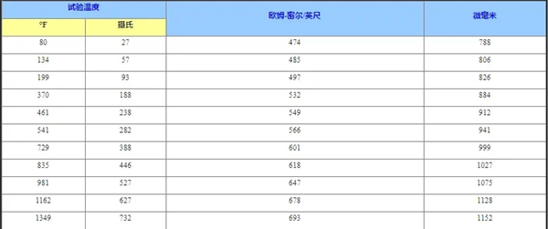在1710°F(932°C)+/- 25°F(快速冷卻)下每英寸厚度調節90分鐘后,合金350在-100°F保持至少3小時,然后在850°F或1000°F(454°C或538°C)下回火至少3個小時。850°F的回火產生最高的強度和硬度,而1000°F的回火產生改善的韌性和應力腐蝕性能。